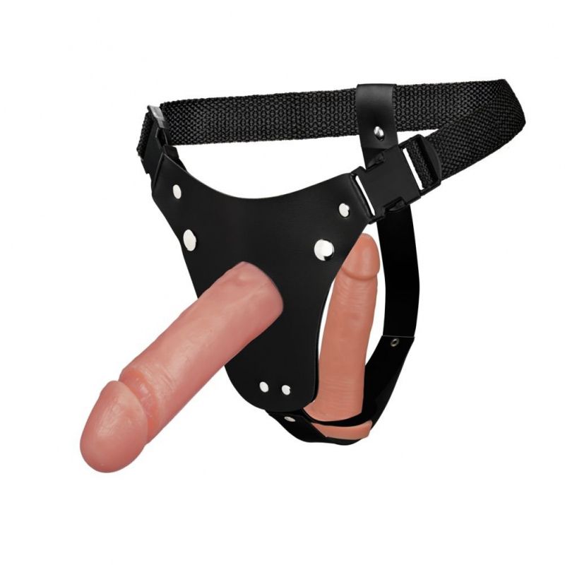Cinta peniana dupla penetração invertida com prótese realística de 15 e 12cm.
