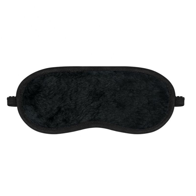 Venda em formato arredondado, confeccionada em tecido acetinado acolchoado na cor preta, revestimento aveludado que garante conforto e adaptação perfeita no rosto.